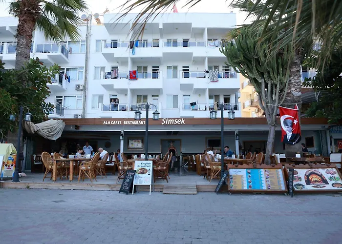 Il Simsek Hotel Fethiye si trova a 500 m da Aries Hamam e fornisce servizio navetta e auto a noleggio. Il bed & breakfast, situato a soli 4 km dalle Ece Saray Marina & Resort, dispone di un ristorante.